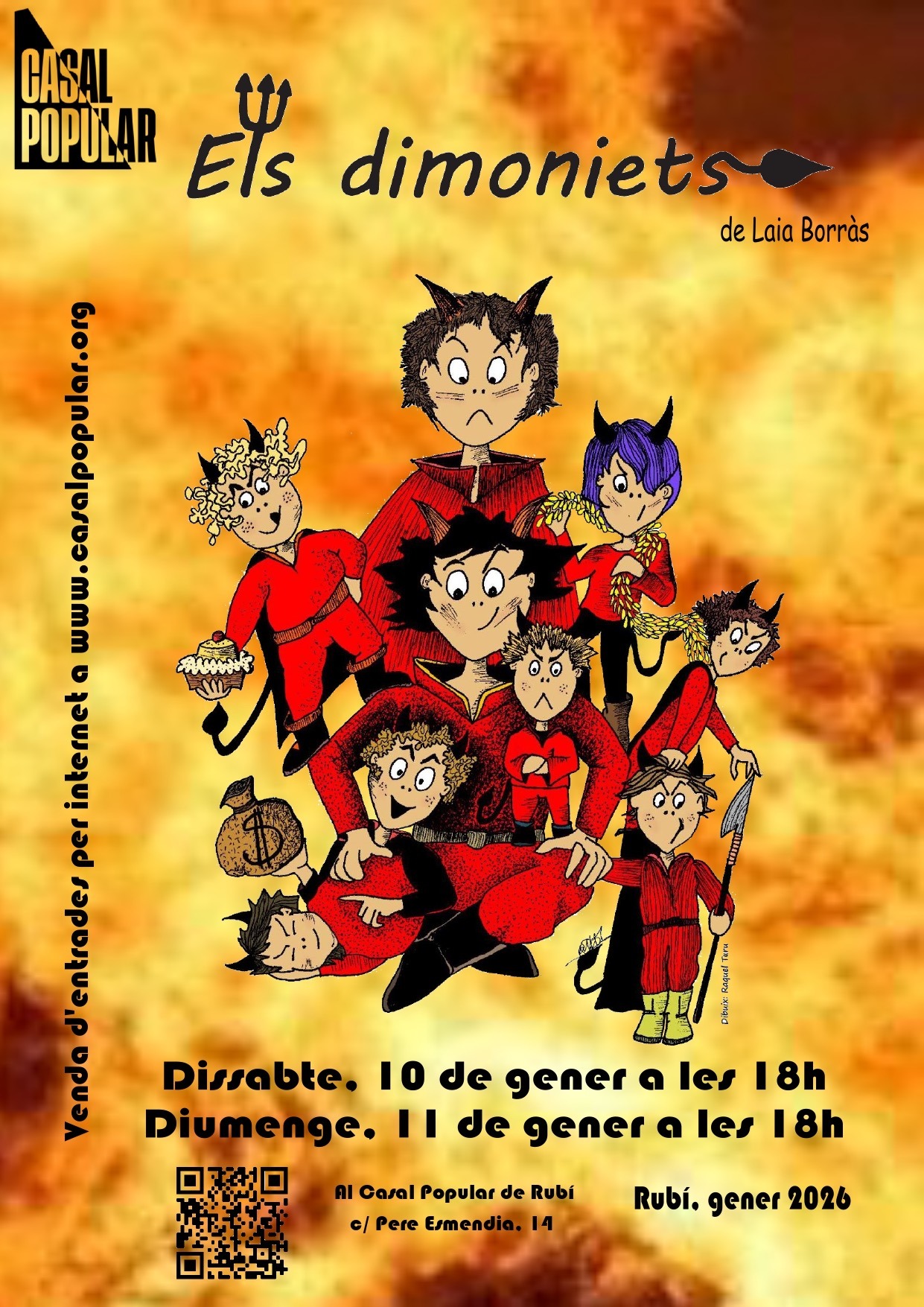 Com ja és tradició els més petits, ens presenten “Els Dimoniets” de Laia Borràs. Dissabte 10 de gener i Diumenge 11 de gener a les 18h al Casal Popular de Rubí